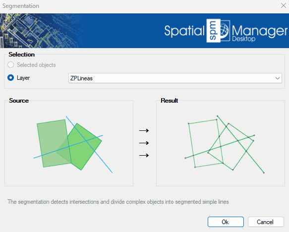Identifies intersections and automatically splits complex linear geometries into simpler line segments. This process is useful for preparing data for topological analysis, editing, or export to systems that require simpler geometry structures..