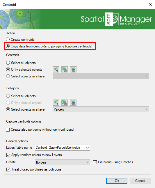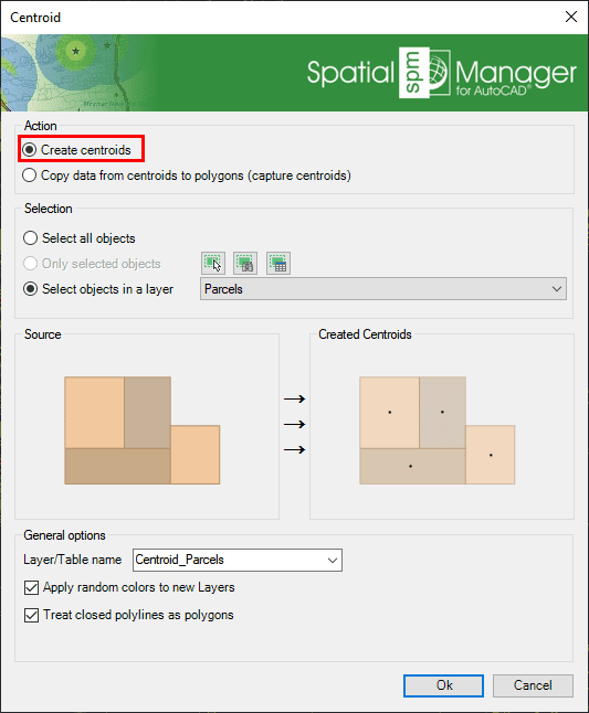 The command ‘SPMCENTROID’ in Spatial Manager™ for AutoCAD includes two functionalities: