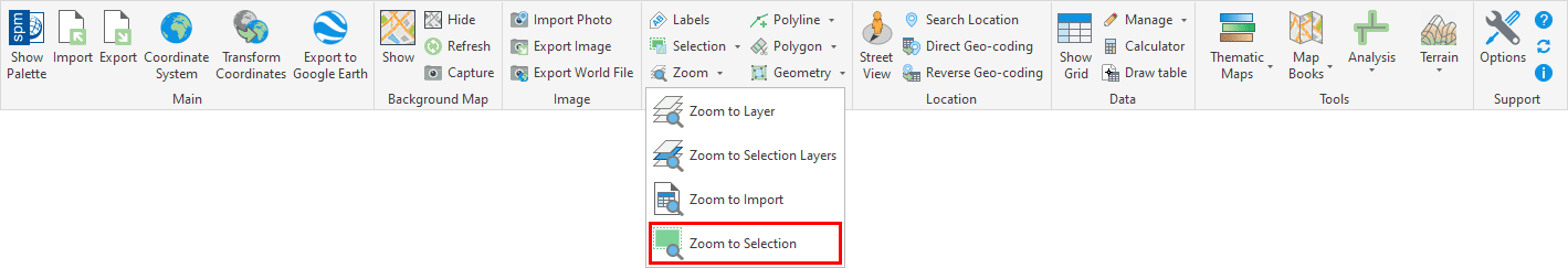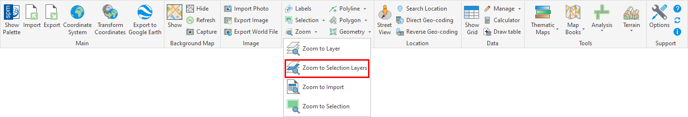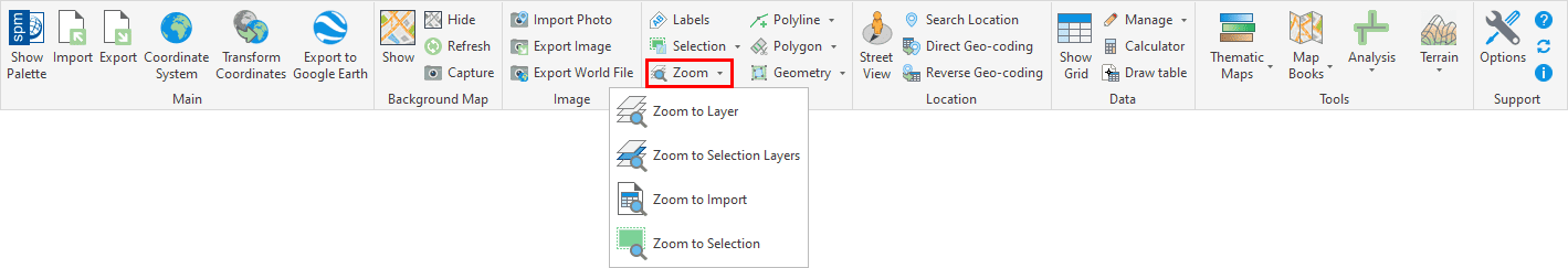 - Zoom to Import (‘SPMZOOMTOIMPORT’): Zoom to the entities resulting from the last import process.