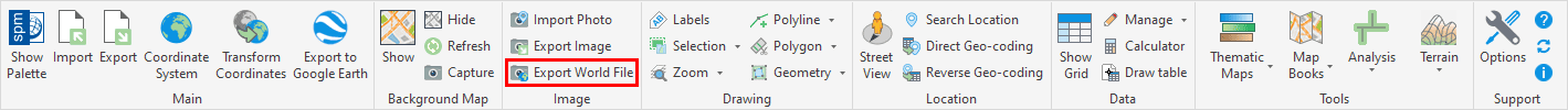 Although when exporting images it is possible to include additional geo-reference files (World, PRJ, etc.) in the export process, it is also possible to export only these additional files when the image is already stored as a separate file. This operation can be carried out using the command ‘SPMWORLDFILE’ of Spatial Manager™ for GstarCAD.