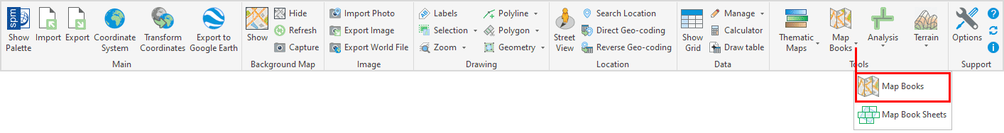 - Map book from sheets: creates a map book based on previously defined sheets or create new sheets.