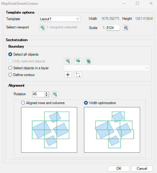 - Selected viewport: select a viewport in the template layout to be used for the sheet, by default the largest one is selected.