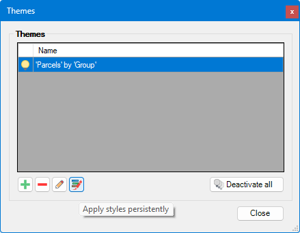 Once a thematic map is created, you can make it persistent from the window that appears running the SPMTHEMATICMAP command by clicking the “Apply persistent theme” button: