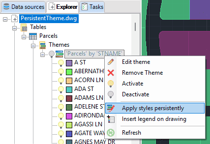 Or also searching the thematic map in the Explorer, right-clicking on it, and selecting Apply styles persistently from the context menu:
